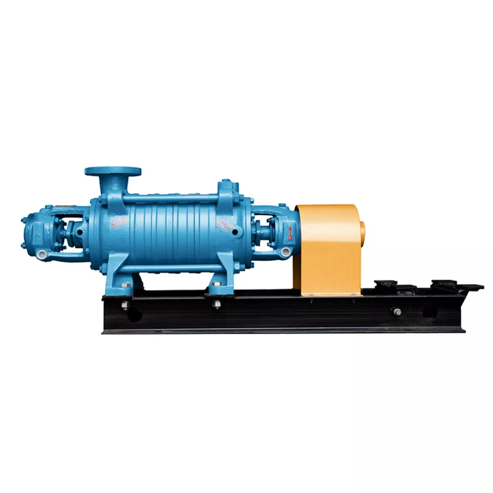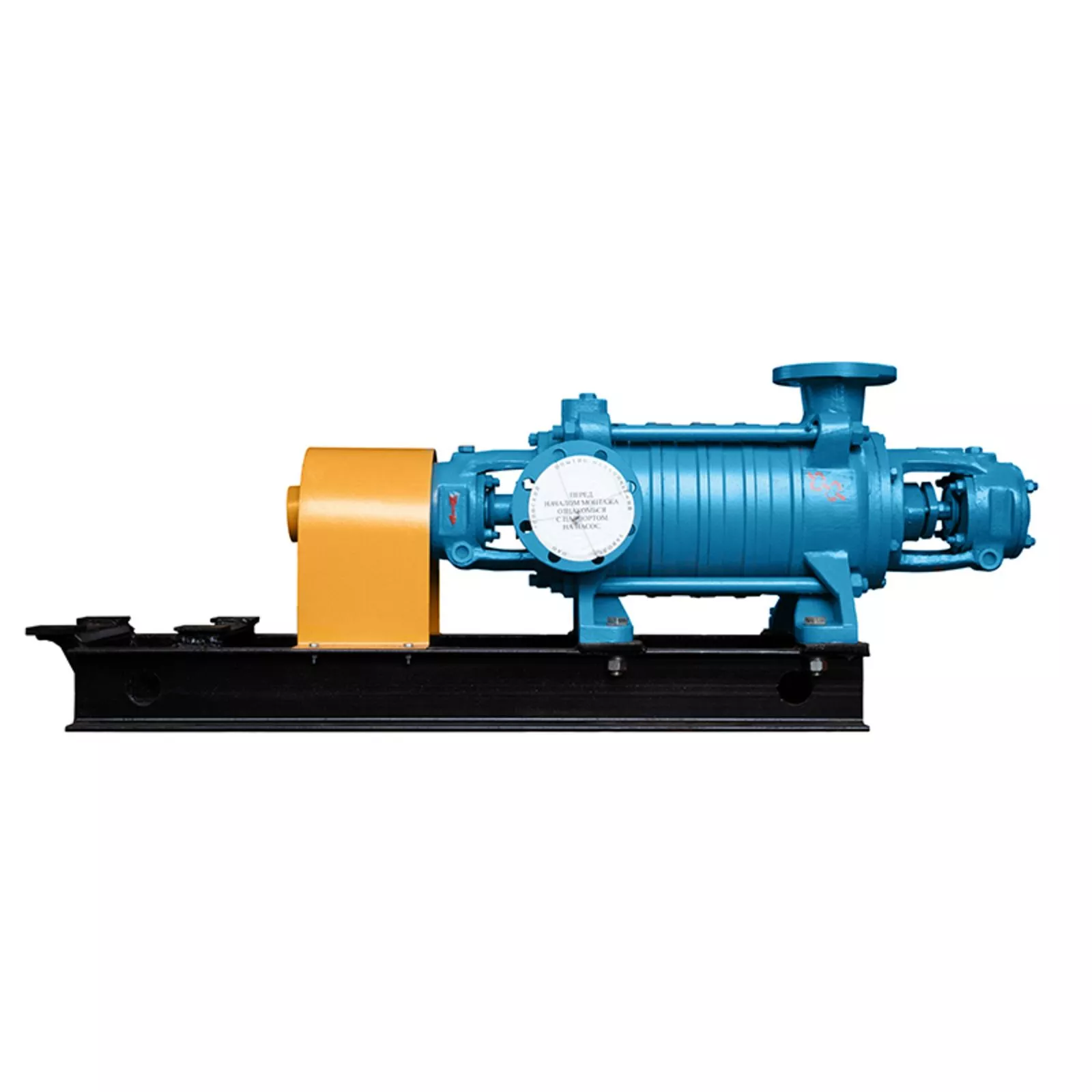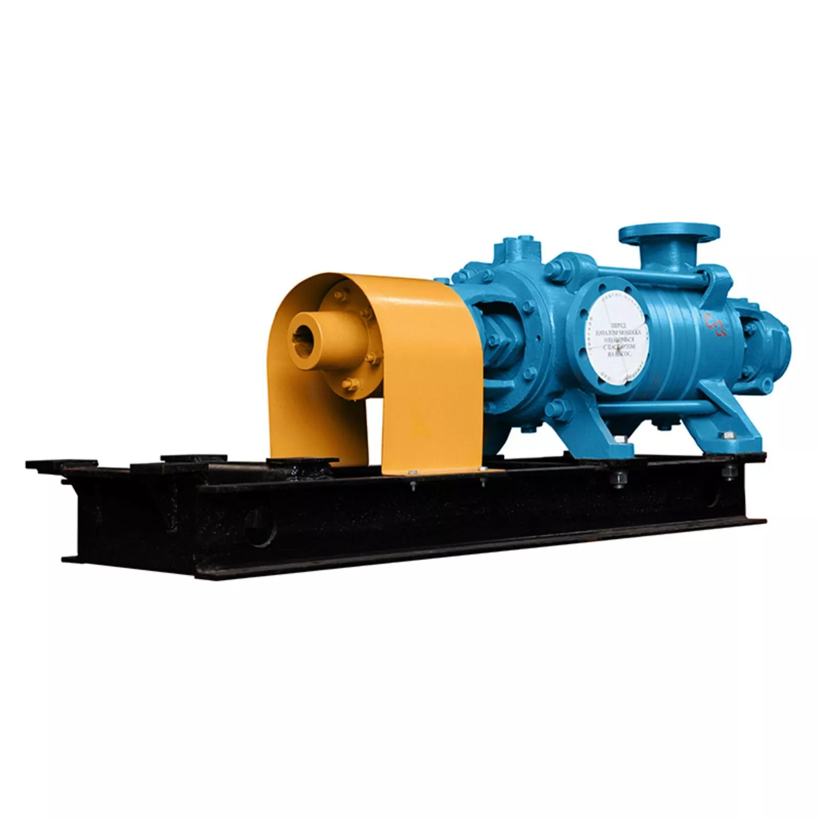 Центробежный многоступенчатый насос ЦНС(г) 38-198 PP на раме, рассчитанный на привод мощностью 37 кВт. Высоконапорное решение для промышленных систем.