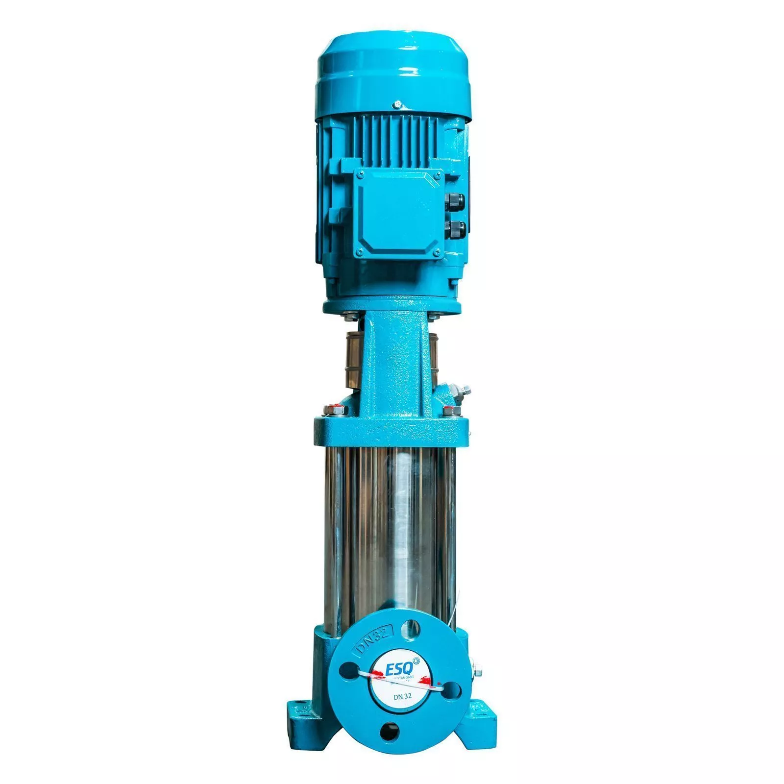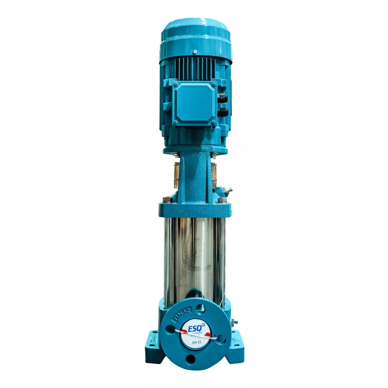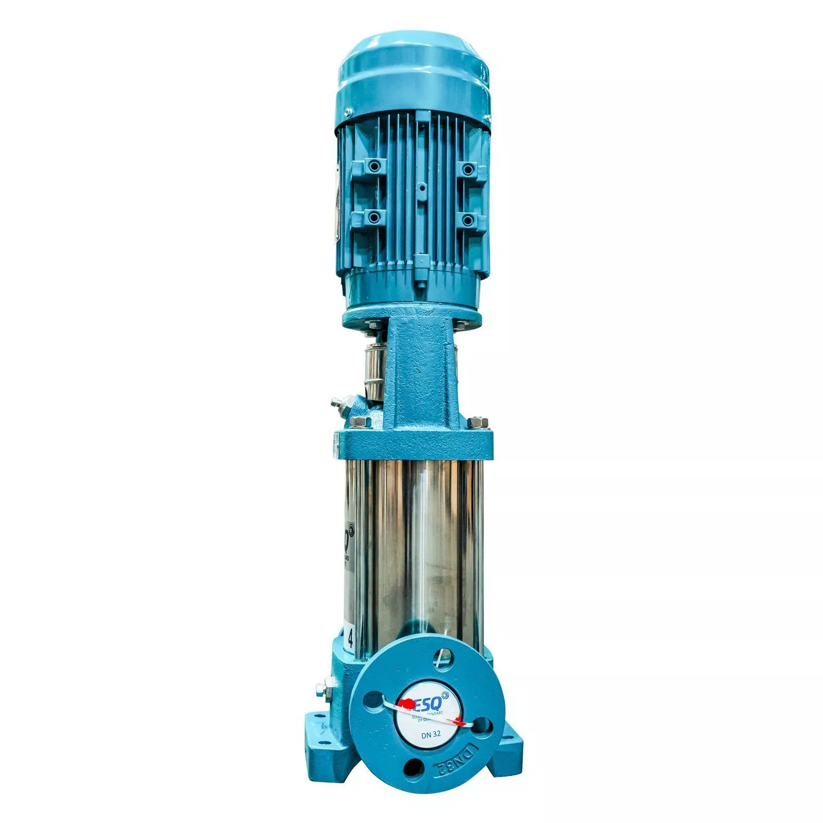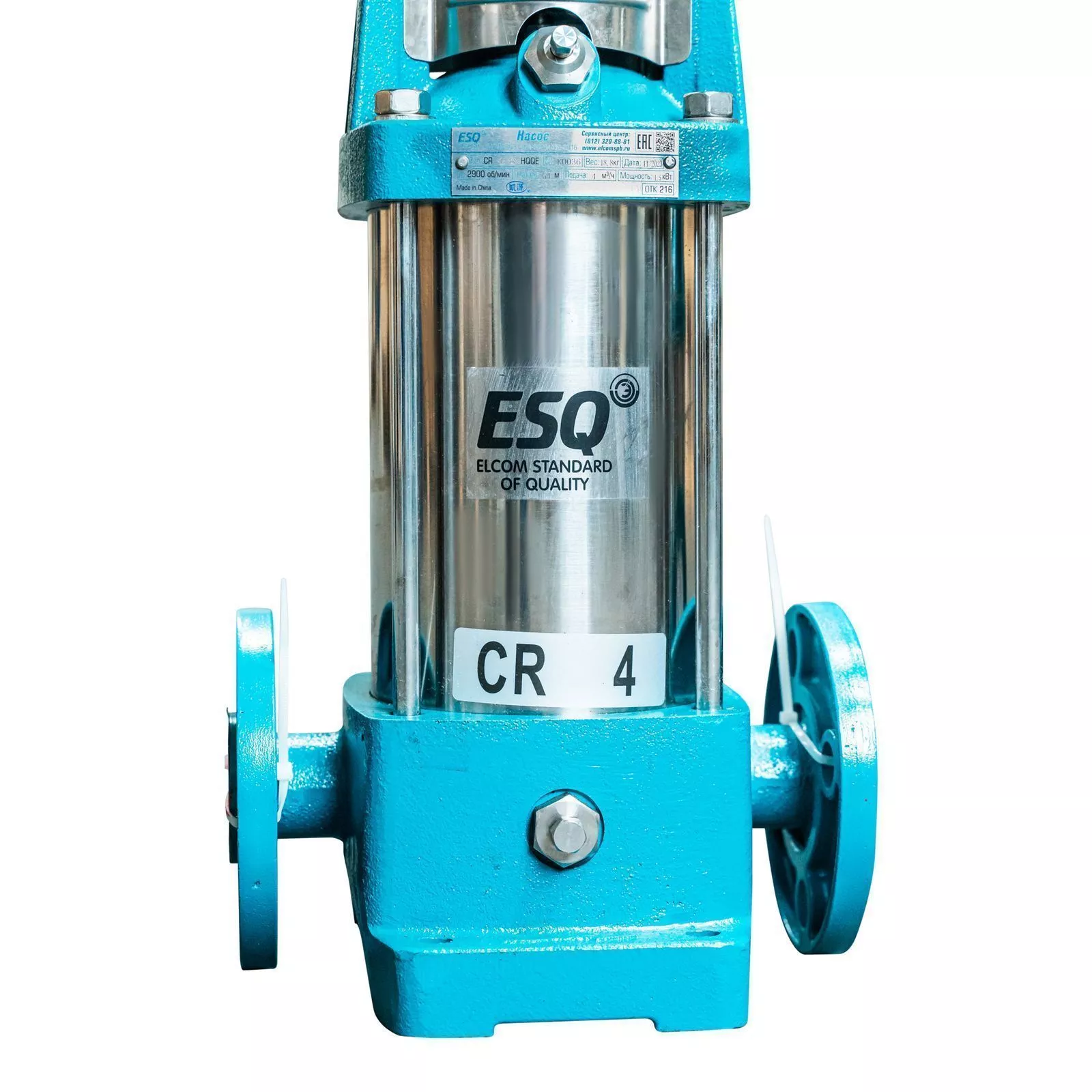 Вертикальный многоступенчатый насос ESQ CR 4-12 HQQE, укомплектованный электродвигателем 2,2 кВт, 3000 об/мин. Компактное и экономичное решение из нержавеющей стали.