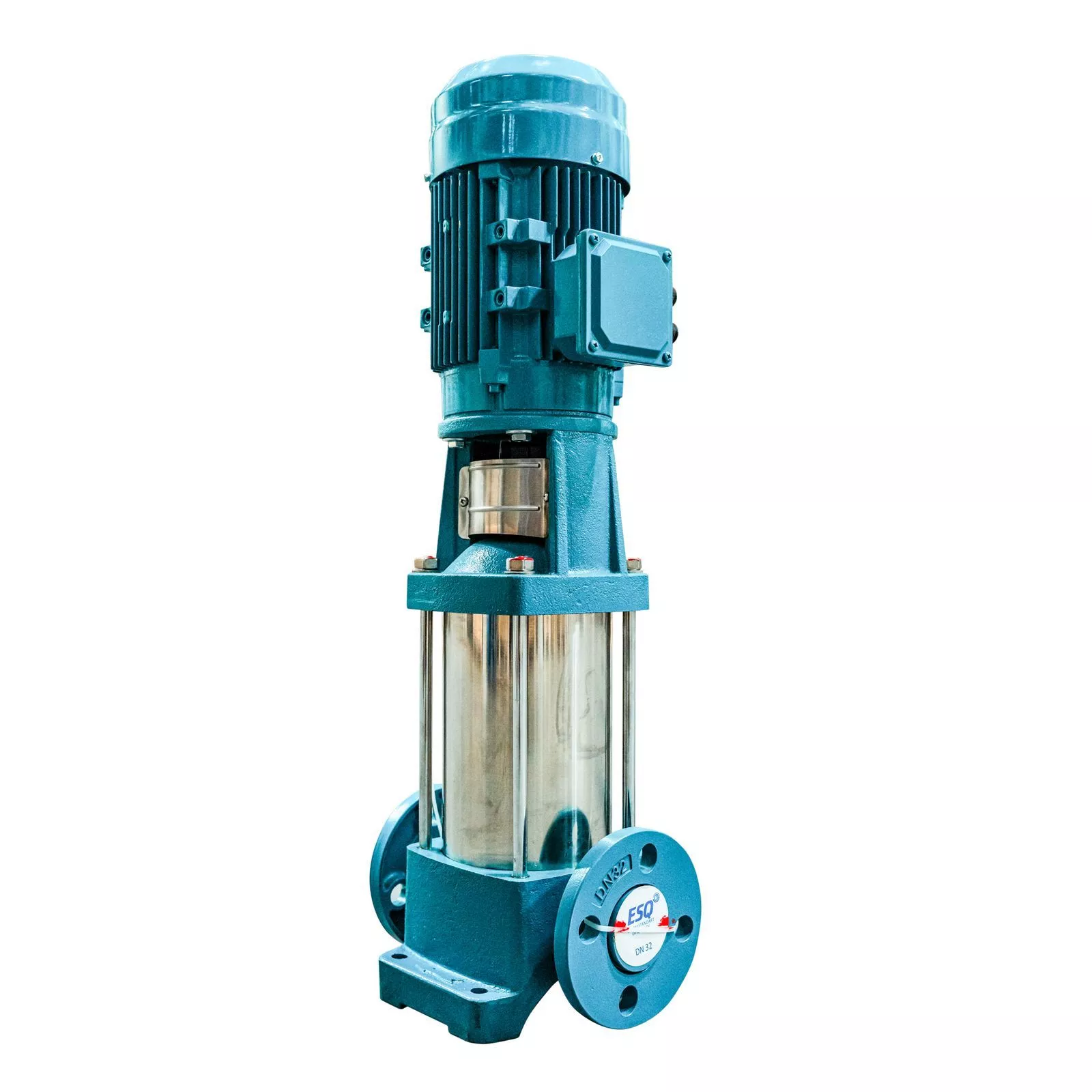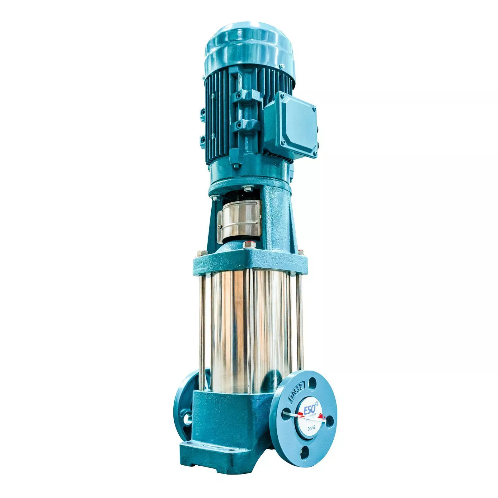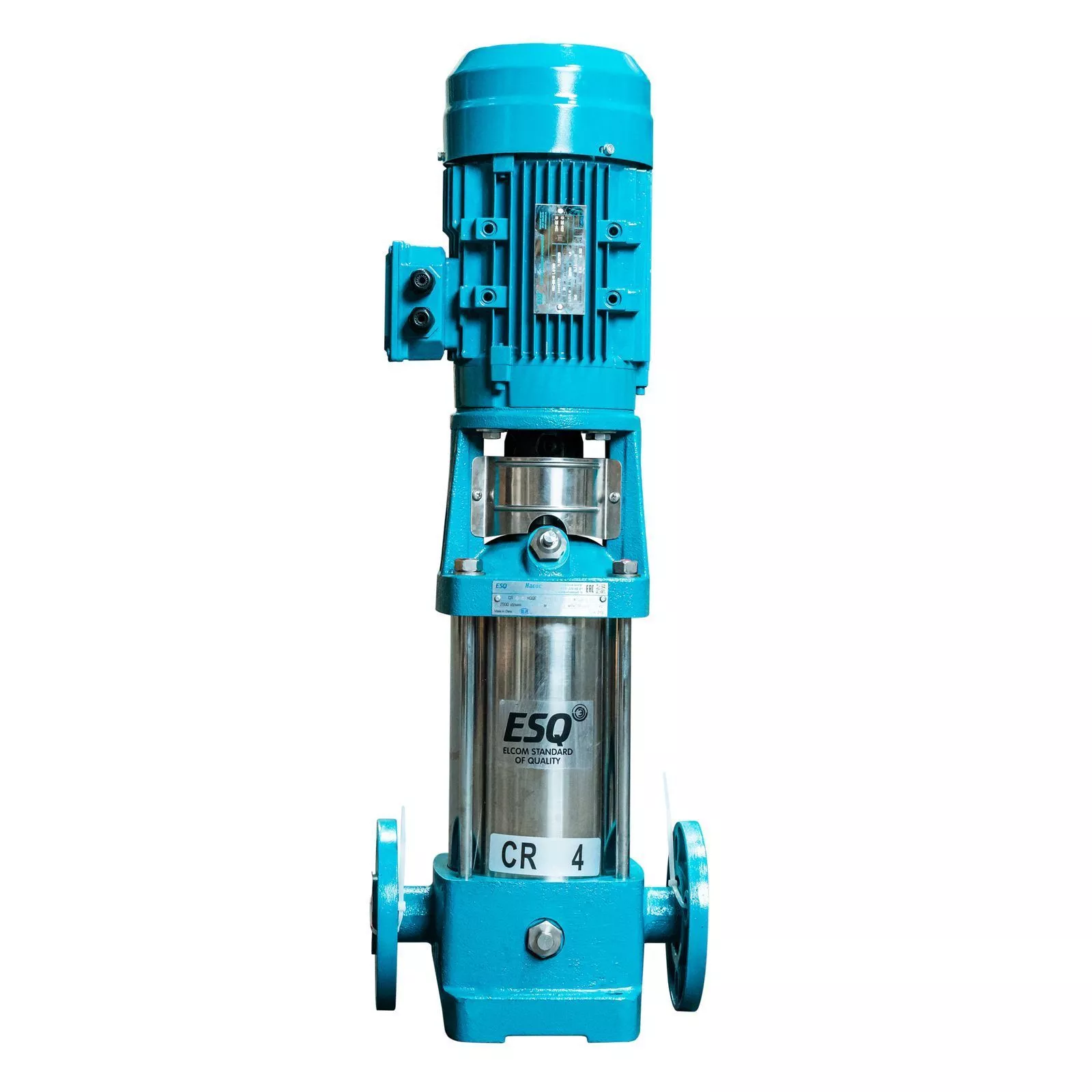 Вертикальный многоступенчатый насос ESQ CR 4-6 HQQE, укомплектованный электродвигателем 1,1 кВт, 3000 об/мин. Компактное и экономичное решение из нержавеющей стали.